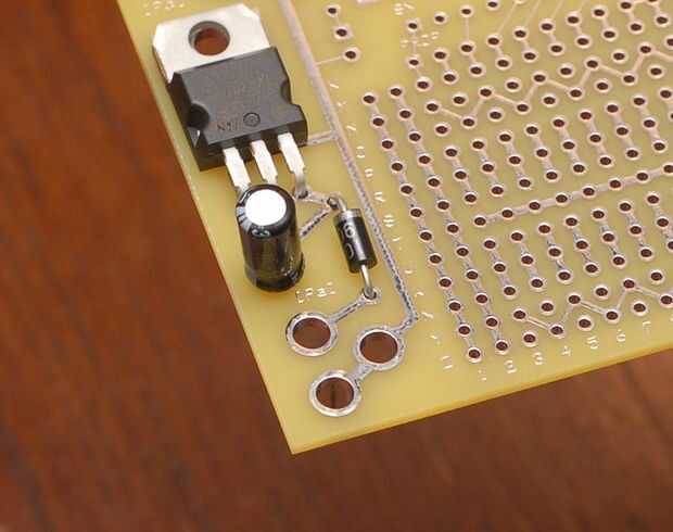 En el diodo, usted notará una raya en un extremo. La franja debe estar más cerca del regulador de voltaje, como se muestra en la fotografía.