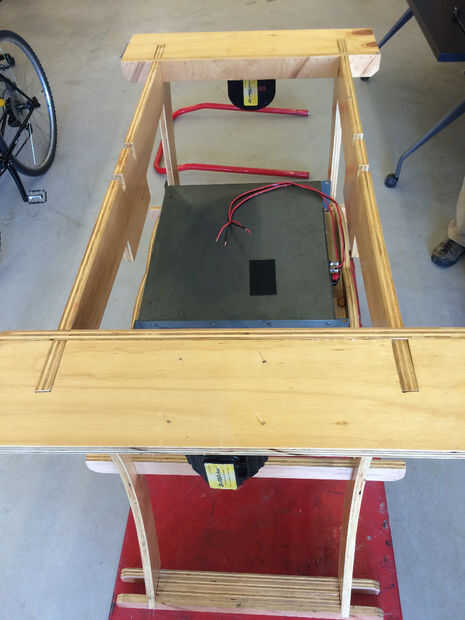 Hemos añadido la electrónica antes de completar el marco ya que era más fácil conseguir los amperios en lugar de esa manera.