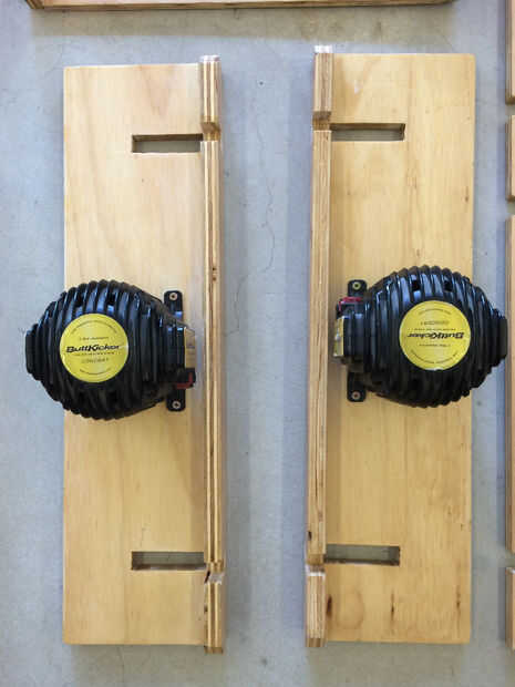 Los altavoces de buttkicker fueron empernados a la parte inferior de los extremos del marco.