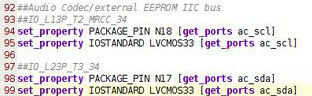 A continuación, busque la sección justo debajo de la sección de códec de audio llamada "#Audio # bus IIC Codec externo EEPROM". Elimine todas las líneas set_property en esta sección.