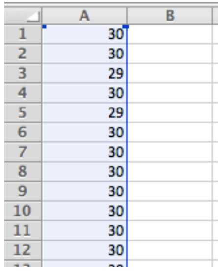 Los datos del sensor deben buscar algo como la imagen - una largas columnas de números.