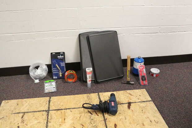 -Martillo y clavo (para abollar la bandeja superior en preparación para la perforación)