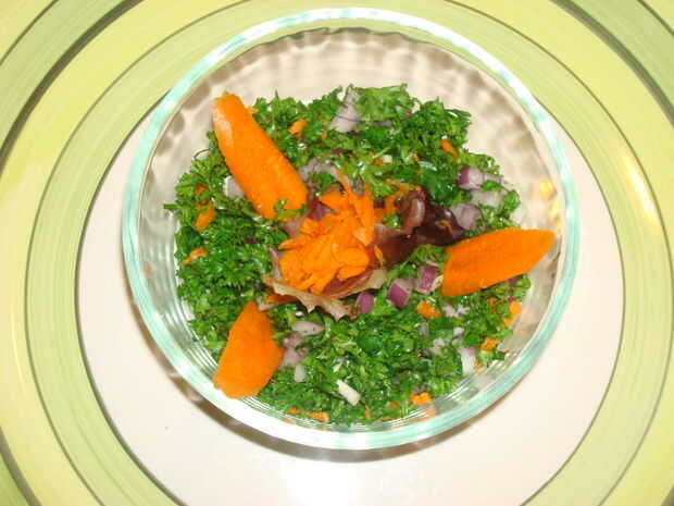 Mientras intenta encontrar alimentos para una dieta cruda que me encontré con un sitio web que un hombre mencionado eso si sus recetas no siguen el plan 5 de la regla no es una dieta cruda verdad. Tuve que reír sobre su comentario. Básicamente es si la comida consistió en más de 5 ingredientes y tomó más de 5 minutos para hacerlo no era una dieta de alimentos crudos verdad. Comer alimentos ricos en vitamina C es muy buena para combatir un resfriado. Este tutorial es una receta para una ensalada que es alta en vitamina C, aplicando el plan de 5 regla. Aquí está el artículo: http://http://rawsacramento.net/recipes.htm .