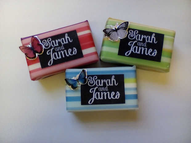 Después de haber agregado una etiqueta, puede Agregar el adorno de su elección. Flores, anillos o estrellas parecer hermoso, pero me gustó cómo se veía estas mariposas dimensionales contra la vitela.