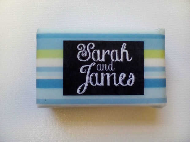 Añadir una pegatina para personalizar tus favores. He utilizado unos que ya había creado - si no tienes arte ya preparado puede crear fácilmente mediante la autoedición o el editor gráfico de su elección. Si te gusta el efecto de la pizarra es muy fácil - simplemente un fondo negro y una fuente como esta gratis para uso personal en dafont.