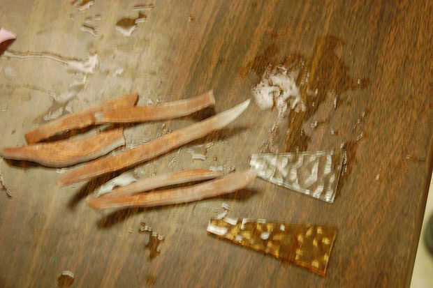Utilice tijeras para cortar el InstaMorph en tiras que puede formar una pieza de vidrio.