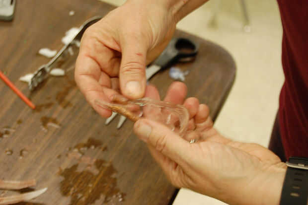 Mantenga una franja de InstaMorph contra un pedazo de vidrio, que forma al vidrio para que sienta seguro.