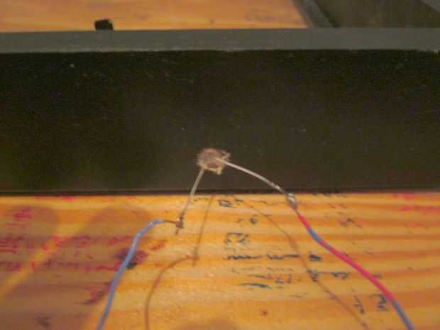 Una vez que el LED es empujado a través del agujero, doblar las puntas y me les pegadas a la caja de presentación para que no.