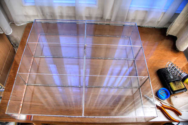Primero pegué la varilla de latón en los tubos, colocados el todo de la batidora en el cruce entre las puertas y los laterales, soldados el * fondo * lado de cada bisagra en los paneles laterales y el * top * lado a la puerta. Poner las bisagras con una sola barra de alineación ayuda a, bueno, para tener las bisagras alineadas y funciona correctamente luego ;)