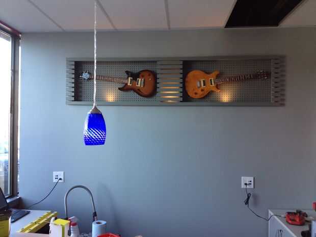 Solía del encogimiento del calor de la tubería en los ganchos de pegboard añaden un toque de agarre y que reducir cualquier arañazos a las guitarras.