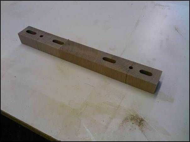Perforación de los orificios de las patillas en los extremos de la larga parte superior e inferior se logra mejor con una plantilla. La plantilla es la misma que creó en el paso #4 y la usado en el paso #8.