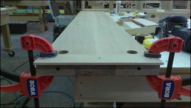 Coloque una abrazadera a la parte superior de la plantilla para asegurar que se registra en la cara superior de la parte superior e inferior. Fijarlo con la abrazadera a la Junta Directiva y asegúrese de que se alinee con la línea de centro de los agujeros de la leva.