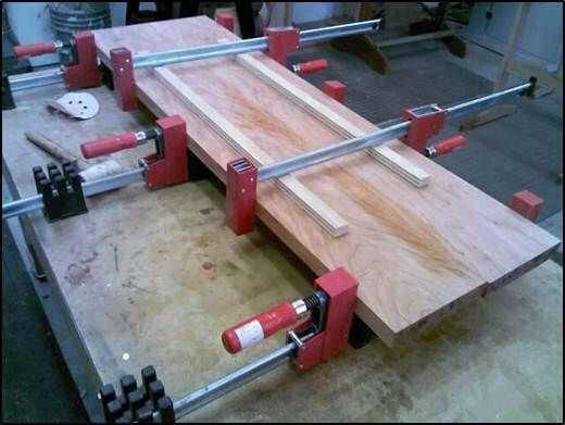 Ahora que las placas son planas y tienen bordes cuadrados, necesita unirse a las tablas para conseguir un ancho final de 13". Dejar las juntas tan amplia como sea posible. Usted corta al ancho final más adelante.