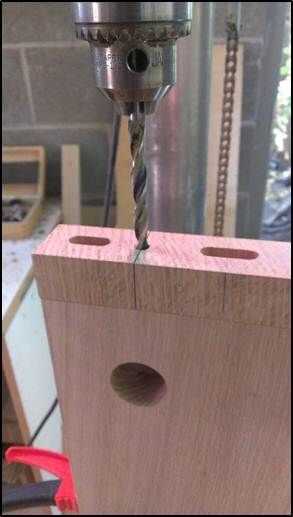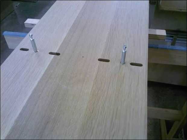 Los insertos roscados se colocan en los divisores verticales y los agujeros se perforan en los extremos de los estantes del exterior.