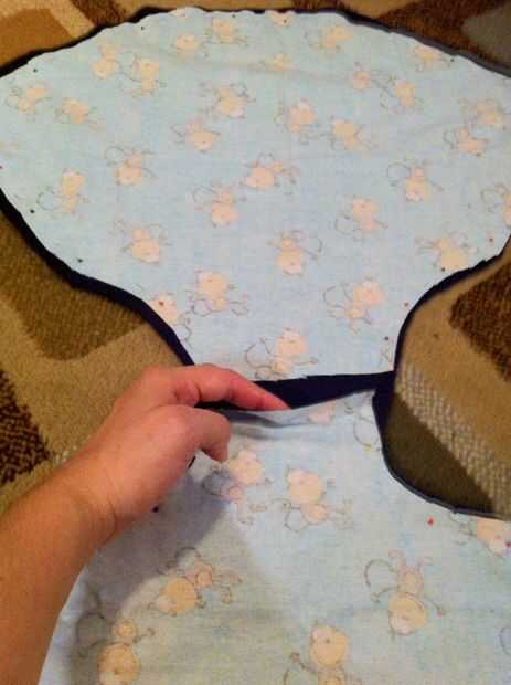 Coser alrededor del exterior de la tela, gire derecha hacia fuera y luego coser los lados y medio juntos. Coloque la almohadilla nuevamente en el centro de plástico y marque donde las correas hay que. Usé velcro en la mía. Y una T con las correas. Coser la base de la T a la tela, y la parte superior de la T se va a través del orificio en la base.