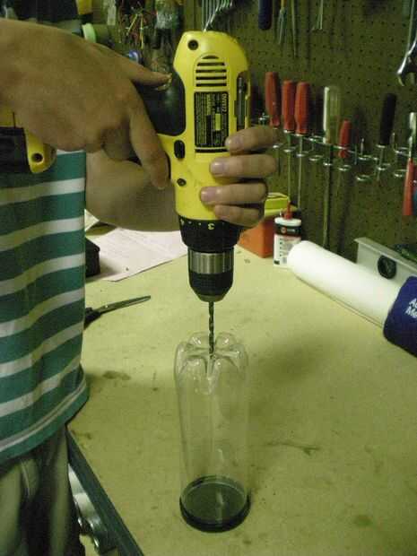 El helecho no es necesario regar muy a menudo en todos porque muy poca agua escapa del contenedor, pero eventualmente tendrá que añadir un poco más. Que es donde los agujeros de agua mano, son pequeños agujeros perforados en la parte superior (en realidad la parte inferior) del contenedor. Funcionará cualquier broca de tamaño pero el más pequeño es que el más agujeros deben perforarse. Usé una broca de 3/16 y 2 agujeros perforados.