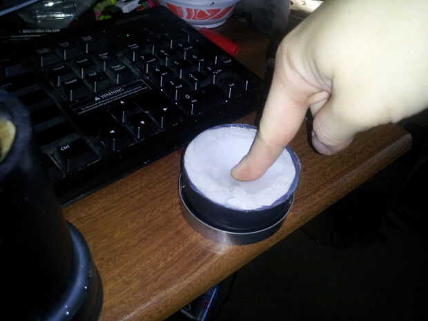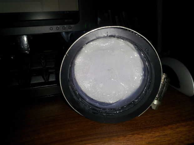 Me corte el centro de la tapa y cortar en forma de pieza de un viejo cojín de ratón de disco. Luego lo selló en su lugar utilizando los mismos métodos como la lente en el frente.