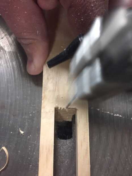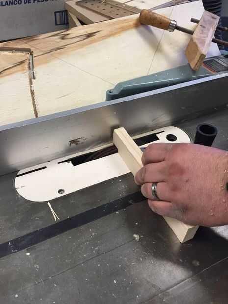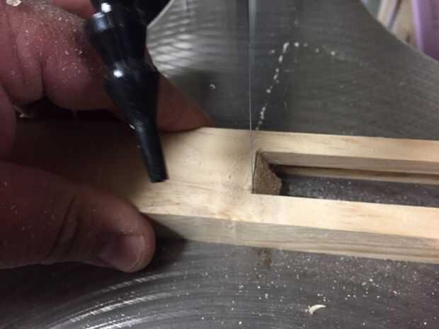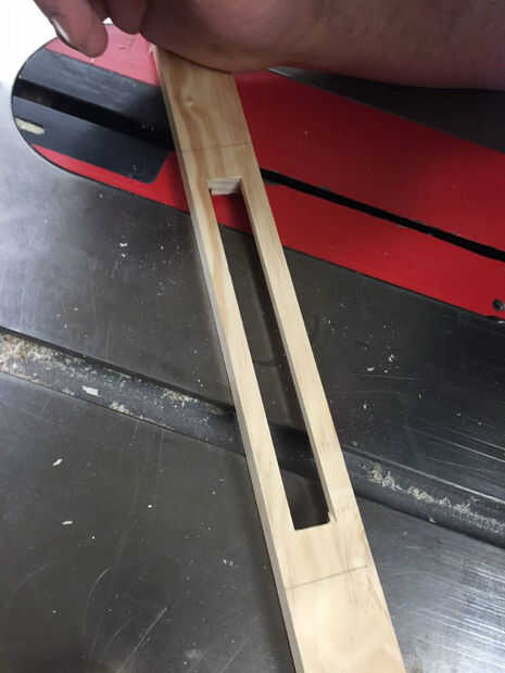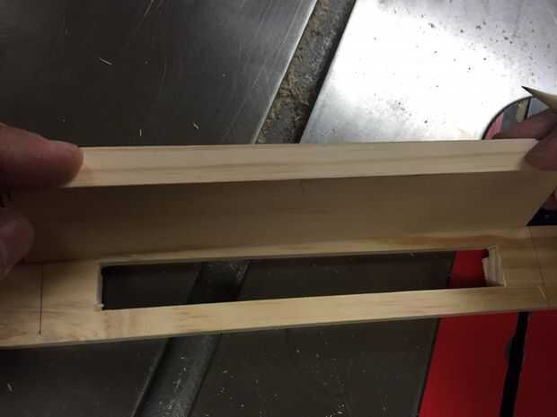 Hemos querido mantener la abertura en la parte superior, segura y sencilla. Para hacer la apertura, sujeta la parte superior de la Sierra de mesa con la hoja de ranurar instalada. Todo había alineado y levantó lentamente la hoja para cortar la abertura. Una vez cortadas, se utilizó una sierra a la Plaza la abertura. Un pedazo de pino fue marcado y rabbited para caber la abertura.