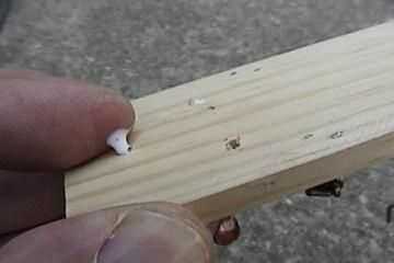 Una vez contenidos que no han jodido gatillo de trampa con este doblez, pulse una gota de pegamento en cada agujero y montar la trampa a la lata.