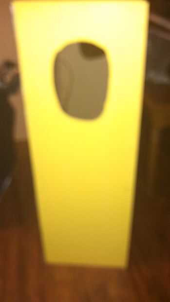 Empezó con madera fina, cortar la forma de la caja y pintado amarillo y los brazos en el lado con un eléctrico pequeño de sierra une con pegamento para madera y una pistola de clavos pequeños.