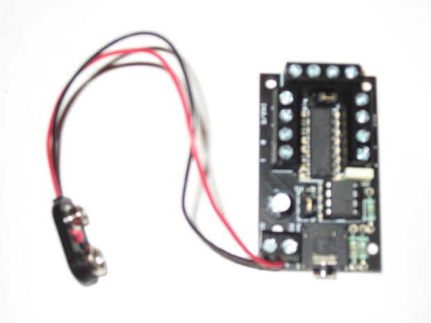 Atacan los cables del clip de alimentación al microcontrolador para que el cable negro va en la ranura en la parte inferior derecha y esquina izquierda y el rojo va en la ranura a la izquierda del cable negro. Atornillar los tornillos que se sujetan los cables. Tenga en cuenta que el microcontrolador viene programado, para que no tenga que escribir ningún código usted mismo.