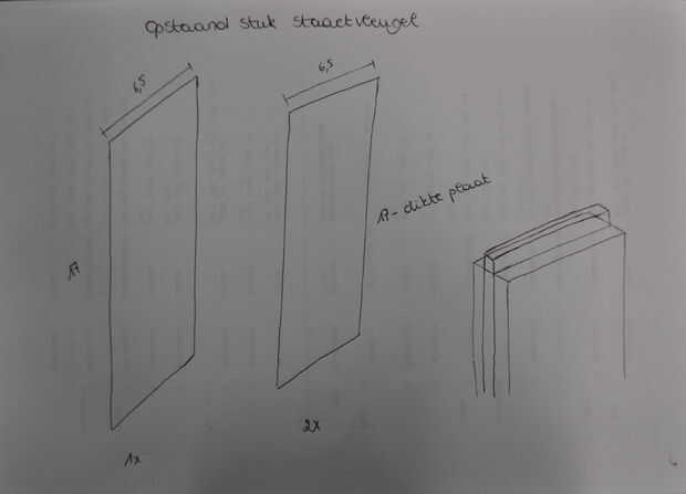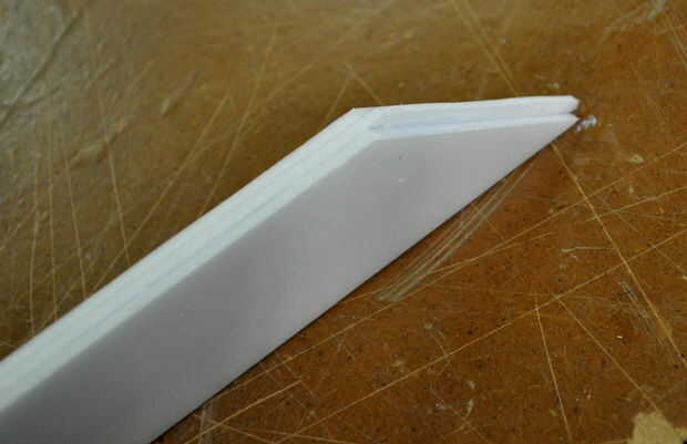 De staartvleugel loopt schuin naar achteren. Voor de stevigheid worden 3 platina aan dirección gelijmd. De middelste es langer; Este plaat zal en het horizontale deel van de staartvleugel gelijmd worden. De langste wordt de plaat dus en het midden gelijmd. Onderaan eindigen de platina op gelijke hoogte.