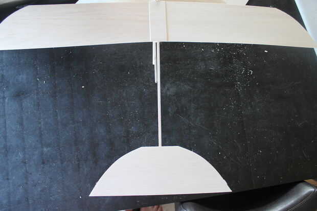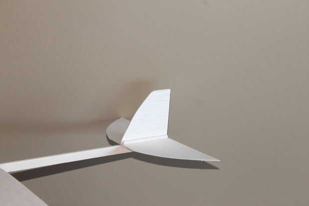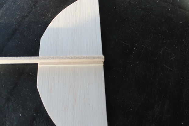 Bevestig nu de langste vleugels en de staart aan het marco. DIT doe je mbv secondelijm en ter versteviging latjes van de 0,5 x 0,5 x 10 cm.