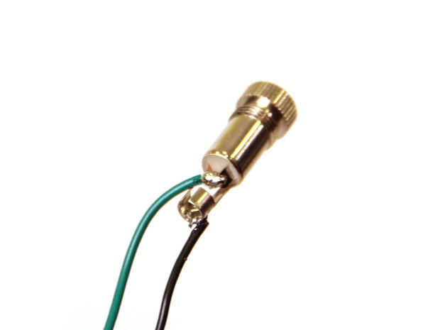 Utilice pegamento caliente para añadir apoyo estructural a estas conexiones y evitar cortos circuitos. Suelde el cable verde con el + final del condensador de 100uF y soldadura el cable negro a tierra.