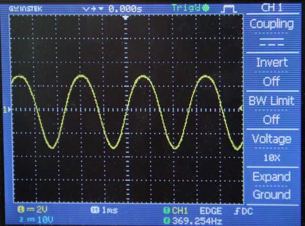 Fig 2 se muestra la señal que viene directamente del micrófono en un osciloscopio. La señal es relativamente débil, con una amplitud de sólo 200mV. Aviso cómo la señal oscila alrededor de 0 voltios - esto es típico de las señales de audio. Idealmente, usted quiere tener una señal con una amplitud máxima de 2.5V oscilante alrededor de 2.5V. De esta manera que la señal está completamente contenida dentro de 0-5V; el Arduino será capaz de medir con máxima resolución y sin recorte. Para ello, la señal necesitará ser DC offset y amplificado.