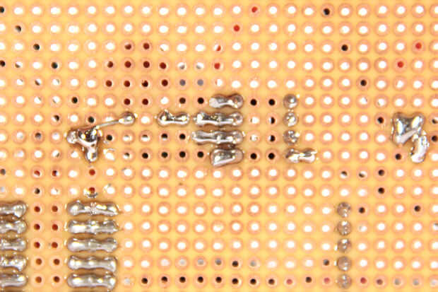 De la soldadura de un capacitor de 47nF-fin del capacitor de 10uF.  Conecte el otro extremo de la tapa de 47nF a tierra.