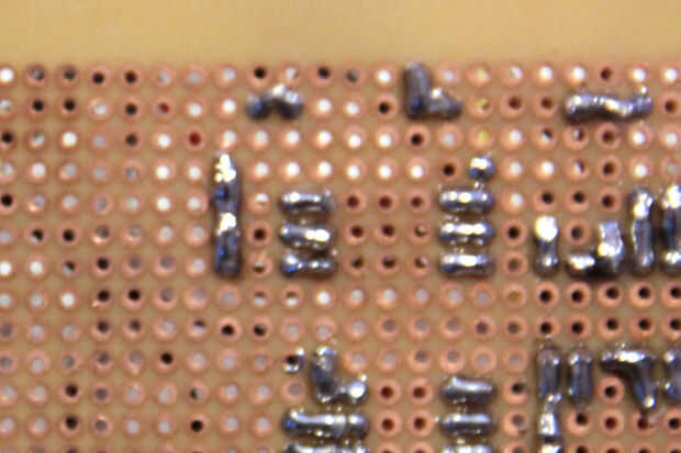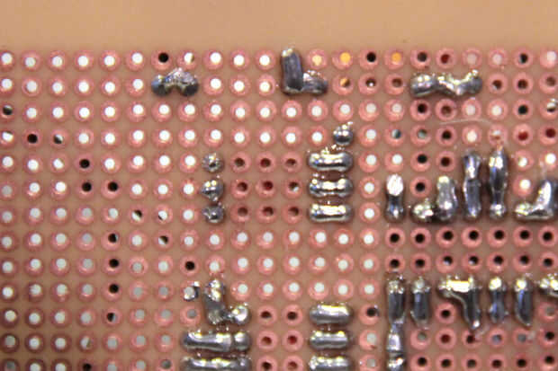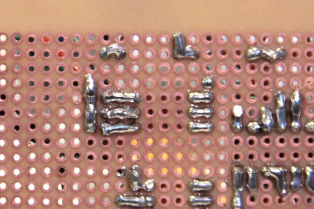 La soldadura de una fila de pins de encabezado a los pines digitales 9-13. Soldar una resistencia de 10kOhm y 0.1uF condensador en serie a los pines 10-12. Soldar el extremo libre de la 0.1uF condensadores conjunto y conectarse a Arduino + 5V. Conectar la clavija exterior de dos 1mOhm lineal potes cónicos en la ensambladura entre el resistor y el condensador conectado a los pines digitales 11 y 12. Conectar la clavija fuera de un pote de conicidad logarítmica 1mOhm en la ensambladura entre el resistor y el condensador conectado al pin digital 10. La soldadura de los pernos de mediados de cada maceta a tierra.