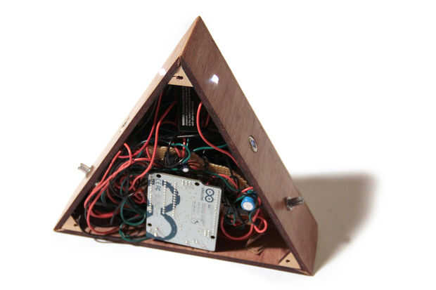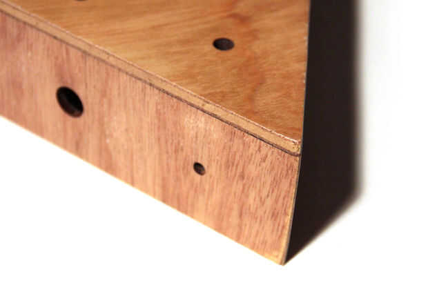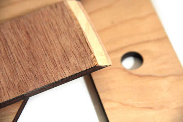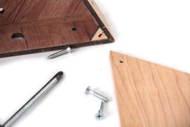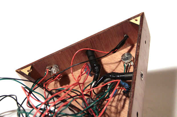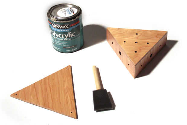 Me cubrió la madera contrachapada de tres capas de polycrylic y pega los lados con pegamento de madera. Pegué tres piezas triangulares pequeñas en las esquinas del recinto, por lo que yo podía atornillar el panel posterior con tornillos para madera (Fig. 3).