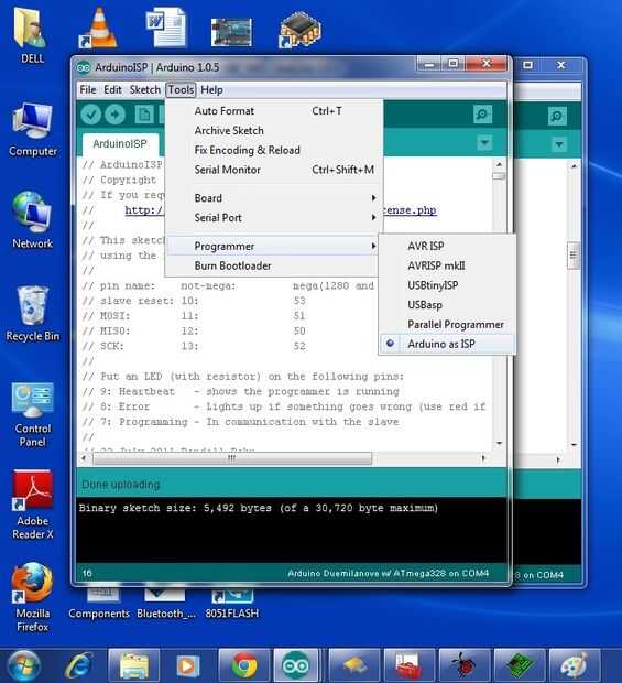 6. Seleccione Arduino como ISP desde herramientas > Programador