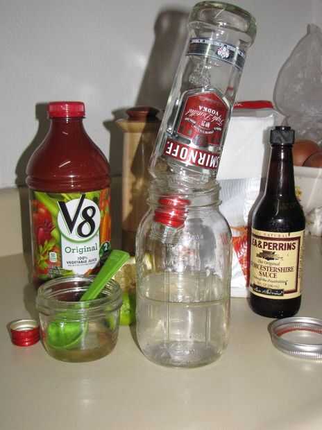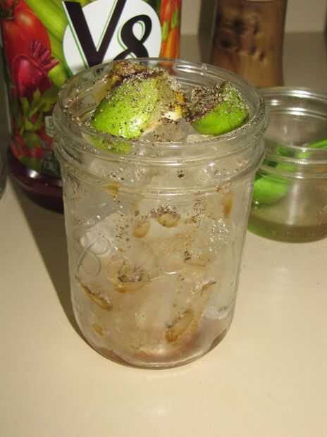 Paso 1: Recolectar ingredientes Utilizamos tarros de masón de Joe Crab Shack, funcionan perfecto!Lista de...Vodka, utilizamos marca Kirkland (Costco)Mezcla de Bloody Mary, utilizamos Zing ZangClamatoSalsa Worcestershire1/2 medio limón para 2 bebidasR