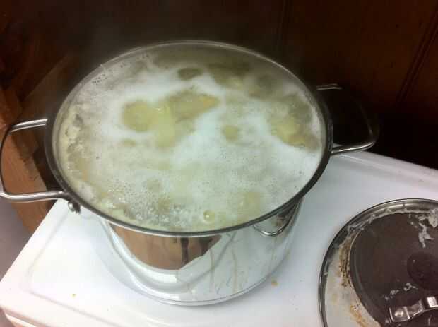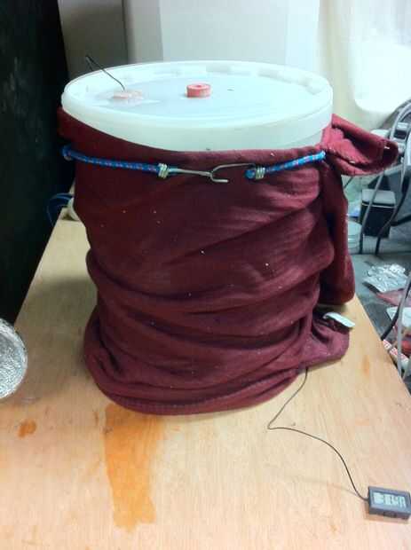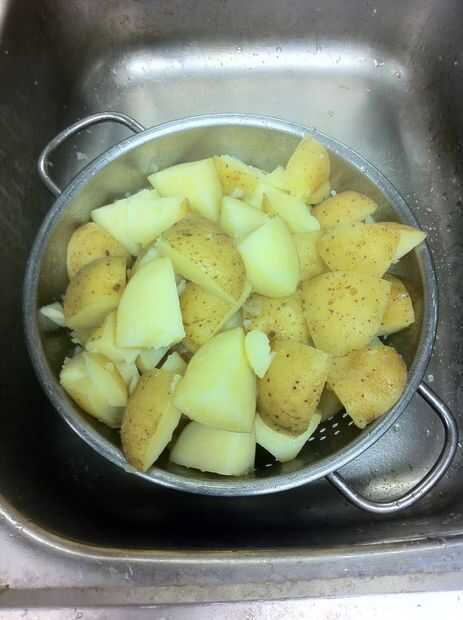 Colar el agua fuera de ellos y pop en su fermentador, envuelve una manta alrededor de minas para mantener el calor mientras que hierve por más papas. Tuve que hervir hasta 3 veces para hacer todas las patatas en una olla 6L de 9 kg, me gustaría que tenía una maceta más grande y que podría haber hecho todo de una sola vez.