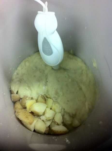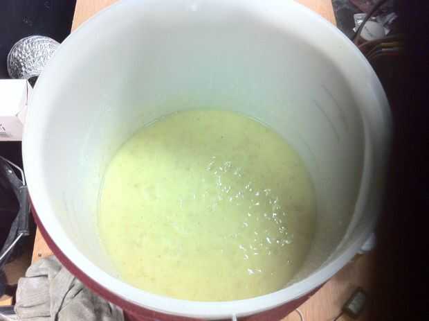 una vez que tengas todos cocidos y en su fermentador que necesita puré para arriba, o remover, usé una batidora de palo pero puede usar un procesador de alimentos o trituradora. será más fácil si añades algo de agua caliente de la caldera. Quiere a líquido como sea posible.