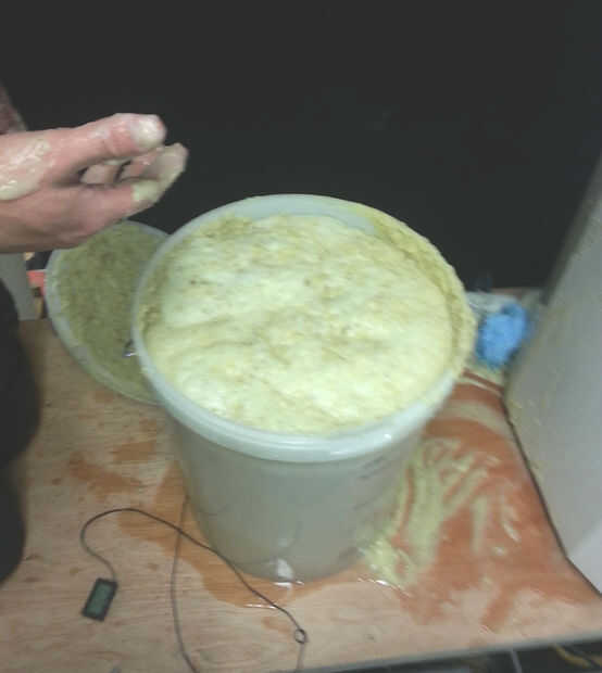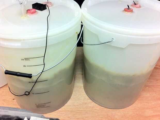 Entonces tuve que dividir el lavado/puré en a 2 fermentadores con bolsas de aire para evitar que esta ocurra de nuevo.