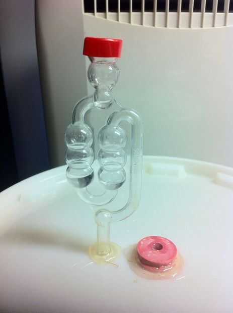 Normalmente al principio del instructable que mencioné cometí un error, y es en este punto que hice, llenar un fermentador hasta aproximadamente 2 pulgadas desde la parte superior. Esto no es normalmente un problema para un lavado de azúcar, y a veces puedes lejos con él en un todo, así el grano. Ahora no estoy seguro si fue el hecho de que yo estaba usando una levadura ale o que llené en el fermentador pero en este momento apareció la tapa, con una bolsa de aire en él y fui a la cama. al día siguiente se despertó y la esclusa de aire está burbujeando bien, toma un poco de tiempo para ponerse en marcha. Así que lo dejó y salió para el día, vuelvo con unas 8 horas más tarde y ha explotado el fermentador. Lo que sucedió fue una espuma o tapa había formado en la parte superior, que es normal, y este consiguió aspirado/empujado hasta la esclusa de aire que se llama Sangranarices, esta había bloqueado la esclusa de aire. Presión se acumula y la tapa apareció abierta derramando una mezcla espumosa de papas en todo el área de trabajo y todo mi aparato de aire acondicionado. Estaba demasiado ocupado limpieza hasta tomar muchas fotos pero tengo algunos de la tapa y un poco de lío de medio camino a través de la limpieza para arriba. No poner esta atrás en el FERMENTADOR si esto le sucede a usted. Corre el riesgo de infectar a las cosas en el fermentador.