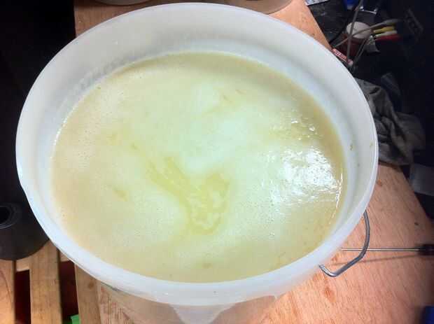 Durante la fermentación que se obtendrá sólidos que haz forzados en la parte superior por el dióxido de carbono que produce la levadura, usted necesitará mezclar esto en el líquido, hacer esto cada 12 horas si se puede. Finalmente la tapa caerá de vuelta propia, esto comenzará a ocurrir ya que la fermentación se ralentiza.