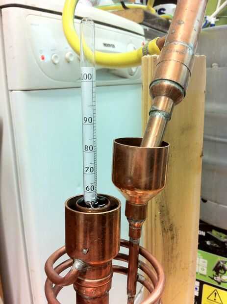 Nota importante: no desea que cualquier fuga en su naturaleza, esto es muy muy peligroso, vapor de Alcohol es más denso que el aire y caerá al piso, y si tiene su alambique en un quemador de gas BOOM! Si encuentra una fuga necesita conectarse rápidamente, tenía una junta mal en mi todavía y apriete la abrazadera del Tri no ayuda fui vieja escuela moonshiner en él. Formado una pasta de harina y agua y ponerlo alrededor de la abrazadera de fuga, el calor de la todavía horneados en y detuvo la fuga.