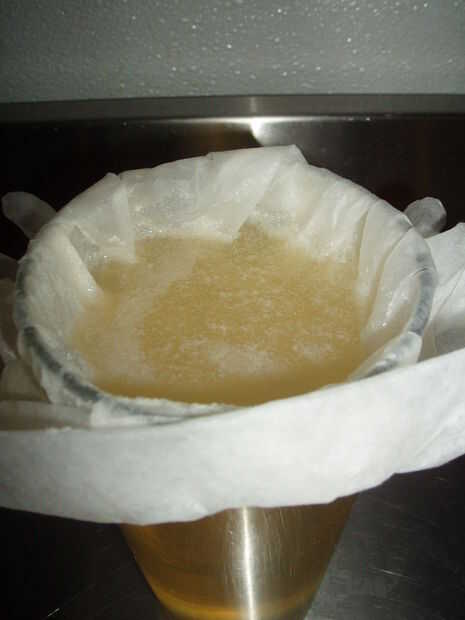 Tomar el vodka filtrado y vuelva a colocarlo en el congelador y repita este paso. Cuantas más veces repites este paso, menos graso será el producto final. Que se filtra tres veces.