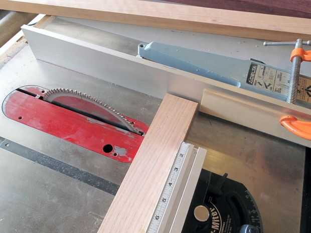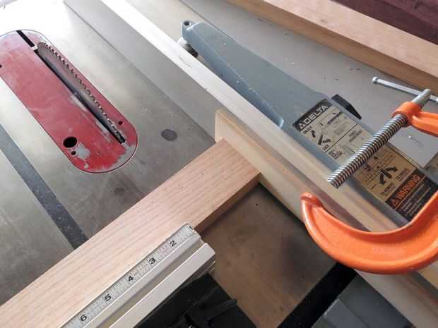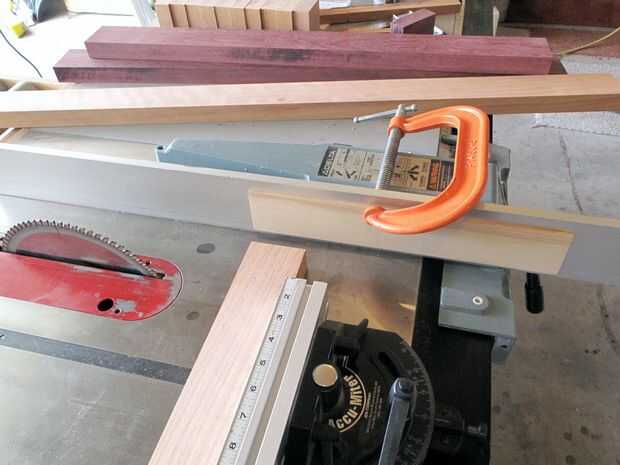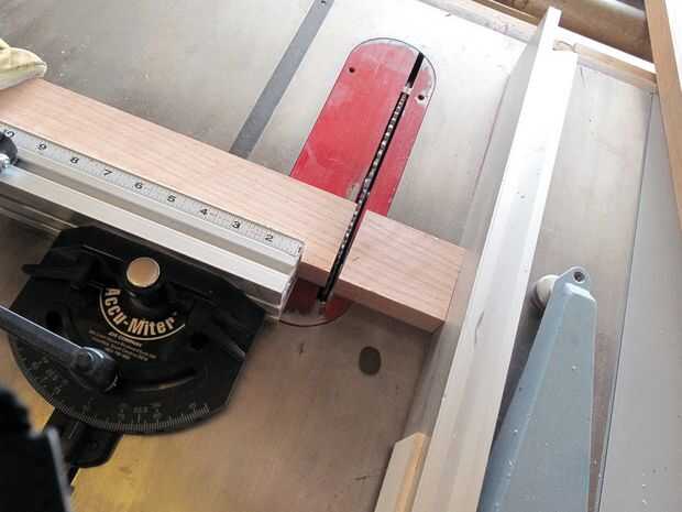La mejor manera para cortar longitudes cortas con una sierra de mesa con seguridad es mediante un "patín" - pero mío perdí en la última jugada, así que tuve que ir con el cierre de la segunda: usando una tabla de espaciador a la valla. La Junta espaciador no debe extenderse más cerca al borde frontal de la hoja de la anchura de la culata está cortando y debe estar situado un poco más lejos - usted no quiere ninguna posibilidad de que el atascamiento de la pieza de trabajo entre la hoja y la Junta espaciador, o, la hoja y el tope-guía. Use una vara para empujar lo más posible y a mantener la cabeza sobre usted cuando use cualquier herramienta. Nunca ser reacios a sacrificar un pedazo de la acción - ninguna parte del cuerpo o lesiones merece la pena.