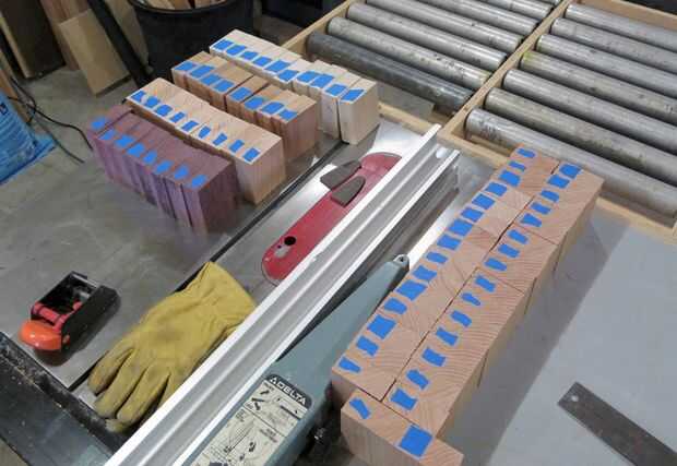 Después de espesor cepillar stock a la misma dimensión (para mantener configuración consistente), arrancó el stock a final de anchura y configurar el ingletadora Sierra para cortar longitudes. Por desgracia, la única hoja que tuve por parte recientemente fue utilizada para cortar un manojo de suelo laminado cuando ayudé a un amigo en un piso - que es como el corte de bloques de hormigón con la sierra - así fue demasiado aburrido ser muy útil. Esto, sin embargo, me dio la oportunidad de mostrar una técnica para longitudes de corte con seguridad en una sierra de mesa.