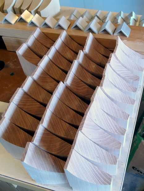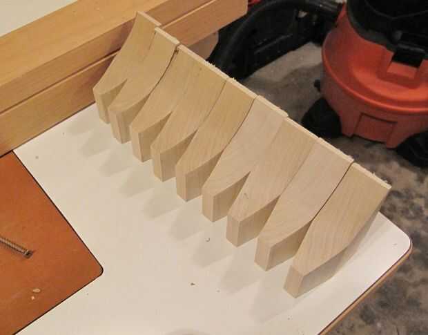 Yo quería una especie de perfil del "ala de avión" en mis ayudas, por lo tanto, que tenía que pensar en una manera eficaz de formar una gran cantidad de piezas. En arte, se dice que una curva puede dividirse en una serie de líneas rectas, así tomé al corazón y hacer una plantilla que me permita cortar simplemente la mayoría de los residuos, en la tabla VI y entonces forma el resto de la lijadora.