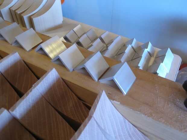 Una vez cortado a la medida, los espacios en blanco fueron enarenados en una cara externa y ambos bordes con un cinturón de arena de 220 en la lijadora. Esto puede no ser necesario, pero que les hace parecer agradable. Todos los bordes y las esquinas son entonces derribadas con unos golpes de un archivo de dientes finos.