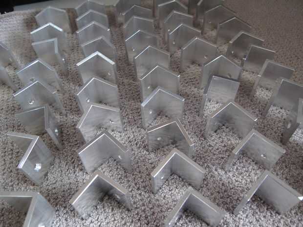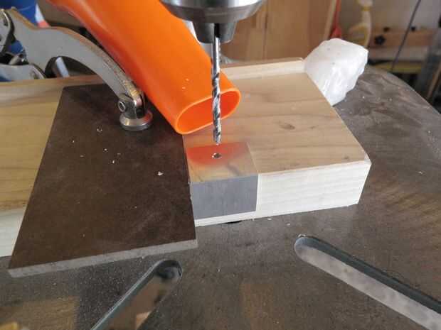 Configurar una plantilla en el taladro que permite perforar rápidamente y con precisión. Recomiendo usar aceite de corte o WD-40 para lubricar el pedacito de cada pareja de operaciones - se mantenga virutas se adhiera a la broca, provocar agujeros limpiador y evitar tener que parar a menudo para eliminar astillas o virutas de la broca. Un plástico pequeño vaso medidor con una pequeña cantidad de lubricante funciona bien - sólo moje la punta de la broca en cada operación, y todo pasará rápidamente. Lubricación es doblemente importante para el funcionamiento avellanado - obtendrás unos resultados de aspecto bastante terribles sin él - el aluminio tiende a "manchar" más cortante.