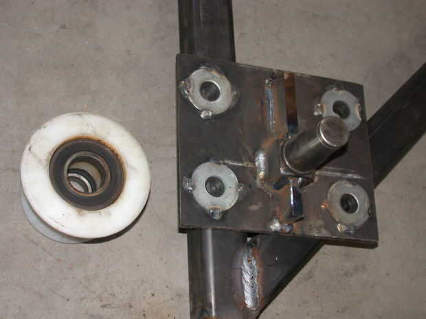 La puerta ha estado funcionando bien durante 5 años con un remoto operado Aleko AC1400 eléctrico deslizante abrelatas de la puerta. El verano pasado las ruedas de poly menor empezaron a llegar aparte por lo que trabajado a máquina algunas ruedas nuevas de un 6" stick de aluminio 7075 que se muestra en el paso 3.