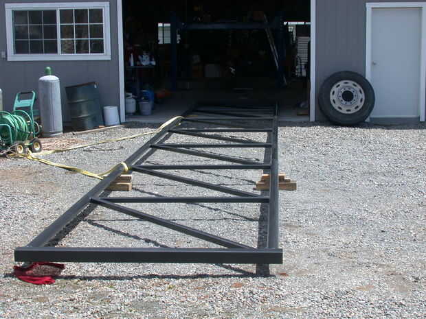 Antes de la soldadura final utiliza una línea de cadena y tachuelas todos los componentes en línea sobre un piso plano. Los listones son de aluminio para mantener el peso bajo y son generalmente usada en áreas de piscina y tal y está disponible en cualquier lugar.