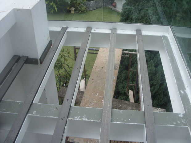 por lo que hemos tenido este porche hormigón mira muy robusto pero extremadamente llano en la parte posterior de la casa, y siempre hemos querido hacerlo más caliente y más acogedor. La solución obvia, para nosotros, era para sustituirla por una de m