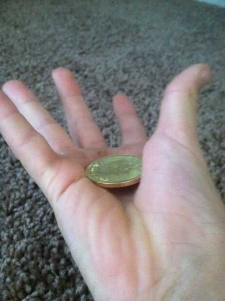 materiales - moneda, lápiz, bolsillos.Nota: Puede que desee probar este truco solamente antes de realizar delante de los demás.  Requiere un poco de práctica.Paso 1: Mantener monedas en una mano con la palma abierta, para que todos pueden ver.  Soste